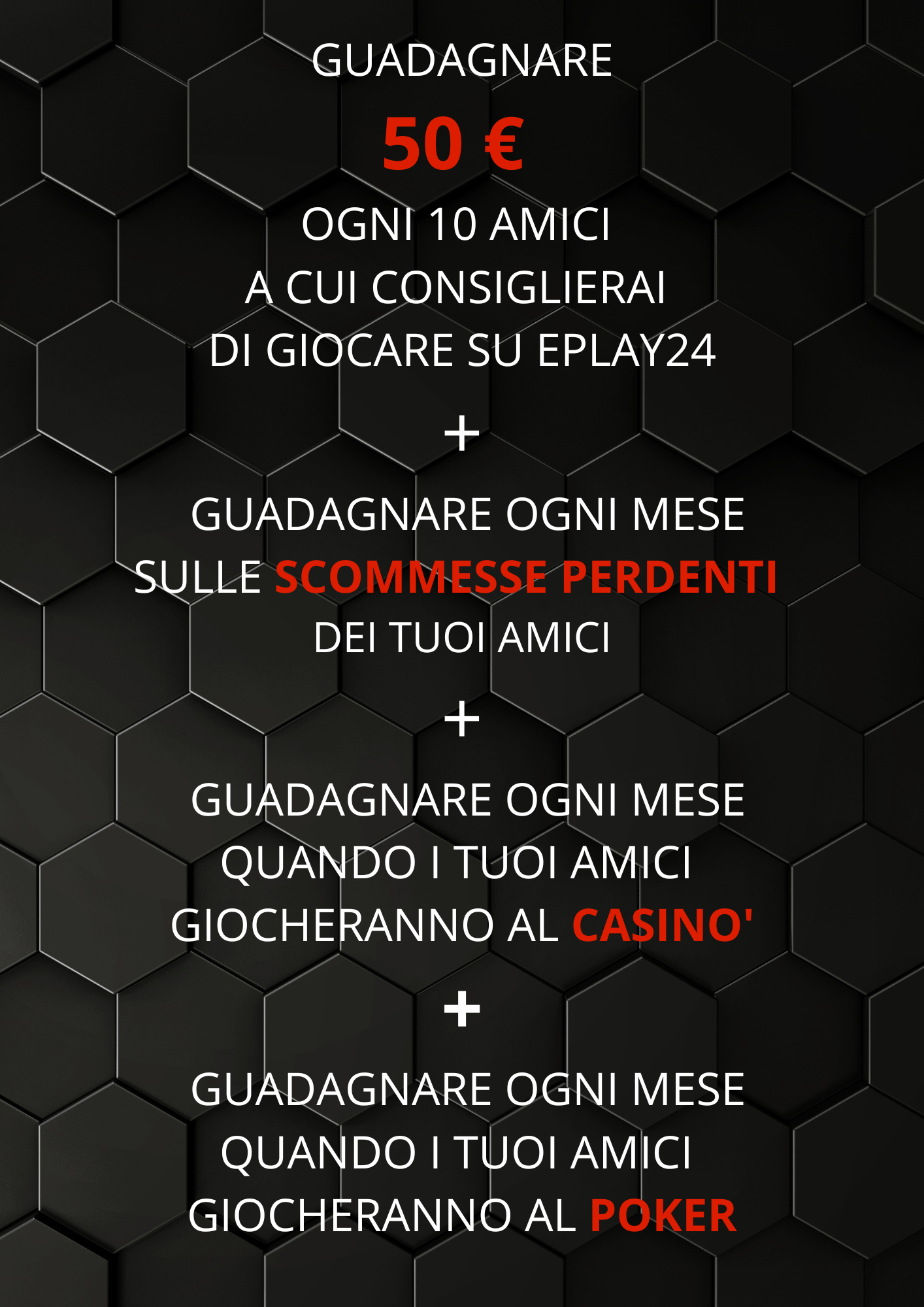Infatti registrandoti velocemente tramite questo LINK avrai la possibilità di ACCEDERE ad un PROGRAMMA VIP che solo EPLAY24 con la formula MyWin propone in Italia!